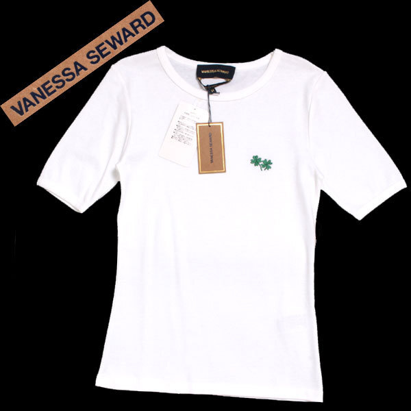 - 新品 VANESSA SEWARD T-SHIRT BINGO TREFLES ワンポイント刺繍Tシャツ 定価18,000円 size34 ホワイト ヴァネッサ シュワード 半袖