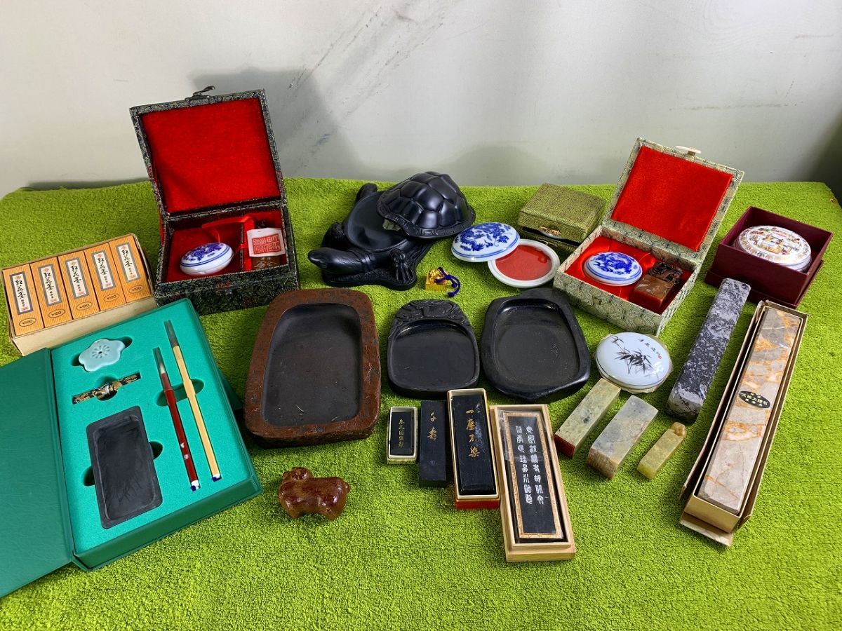 印材 など まとめ 天然大理石 南部鉄器 十二支 文鎮 墨 硯 筆セット 他 書道 書道具