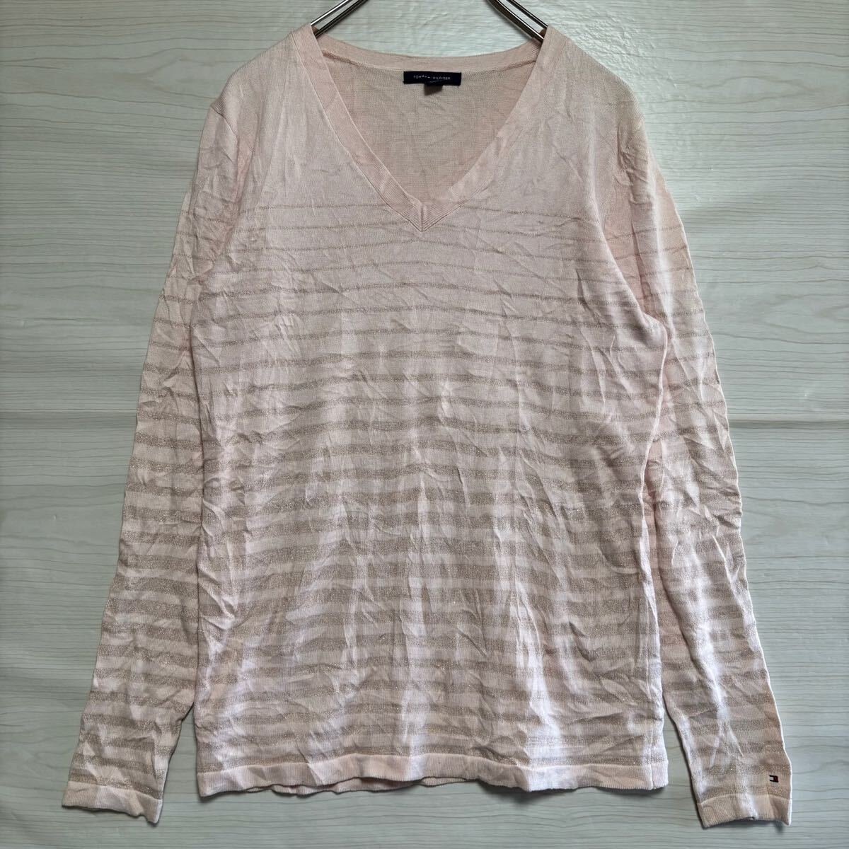 > TOMMY HILFIGER トミーフィルフィガー ニット トレーナー セーター ボーダー コットン サイズM ピンク レディース トップス(36)