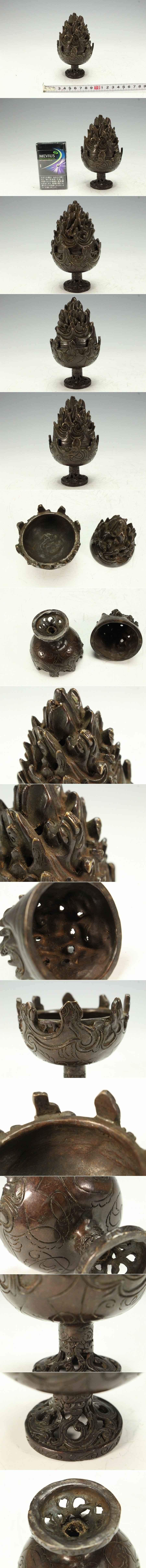 - 【金閣】仏教美術 古銅 博山炉 香炉 旧家蔵出 送料無料(LC973)