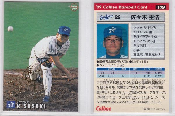 - ●1999カルビー【佐々木 主浩】プレ版:金箔押サインパラ149:横浜