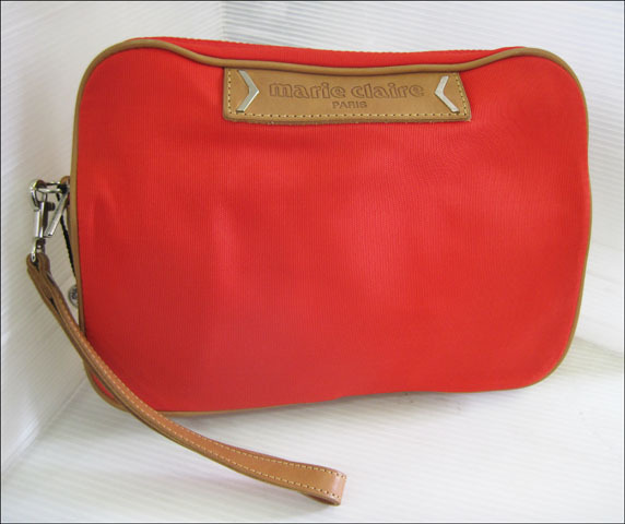 > Bana8◆marieclaire マリクレール トートバッグ セカンドバッグ ポーチ付 赤 ナイロン