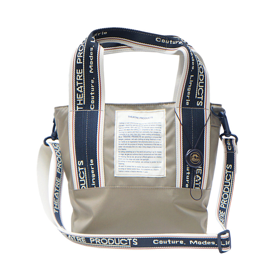 THEATRE PRODUCTS(シアタープロダクツ)2WAY NYLON TOTE “MISSISSIPPI” -S-2ウェイトートバッグ S商品番号:BL230337ショルダー付きが登場しました!ショルダー部分は取り外しが可能なので、ハンドバッグとしても、2WAYでお持ちいただけます。耐久性に優れ、上品な光沢感のあるナイロン素材を使用したジャガードテープバッグ。タウンユースからカジュアルなアウトドアまで活躍するアイテムです。前面に配置されたマニフェストラベルが全体のバランスを整えます。
