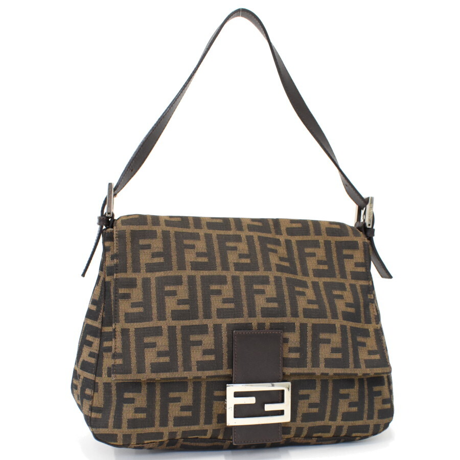 - 1円◎極美品 FENDI フェンディ ハンドバッグ セミショルダー マンマバケット ズッカ柄 キャンバス レザー カーキ ◎E.Cgu.pS-30