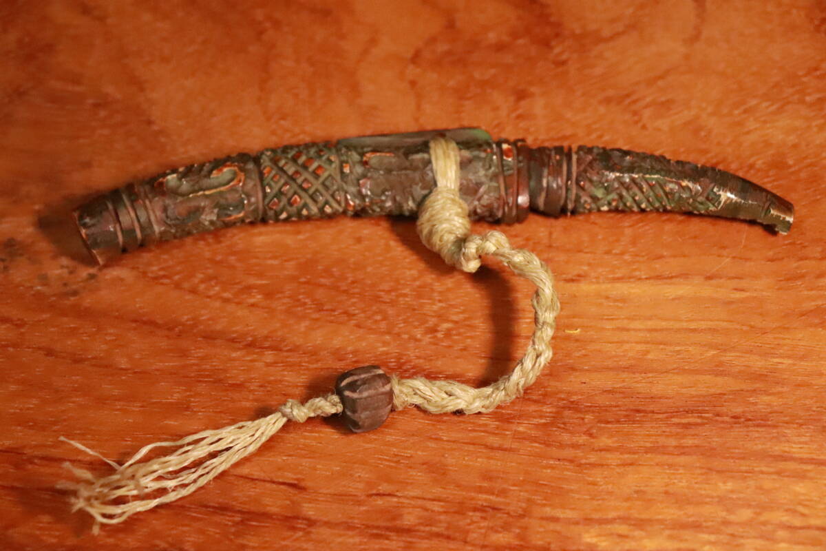 - 珍品 アイヌ民族 鹿角材?時代マキリ 工藝 民藝 熊 クマ 木彫り 郷土 風俗 古道具 美術 ビッキ 狩り 刀剣 鍔