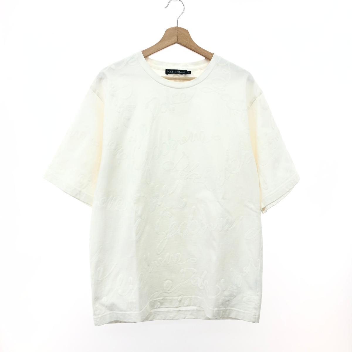 > ◆DOLCE&GABBANA ドルチェ&ガッバーナ 半袖ジャージーカットソー サイズ:S 総柄ロゴプリント ホワイト メンズ