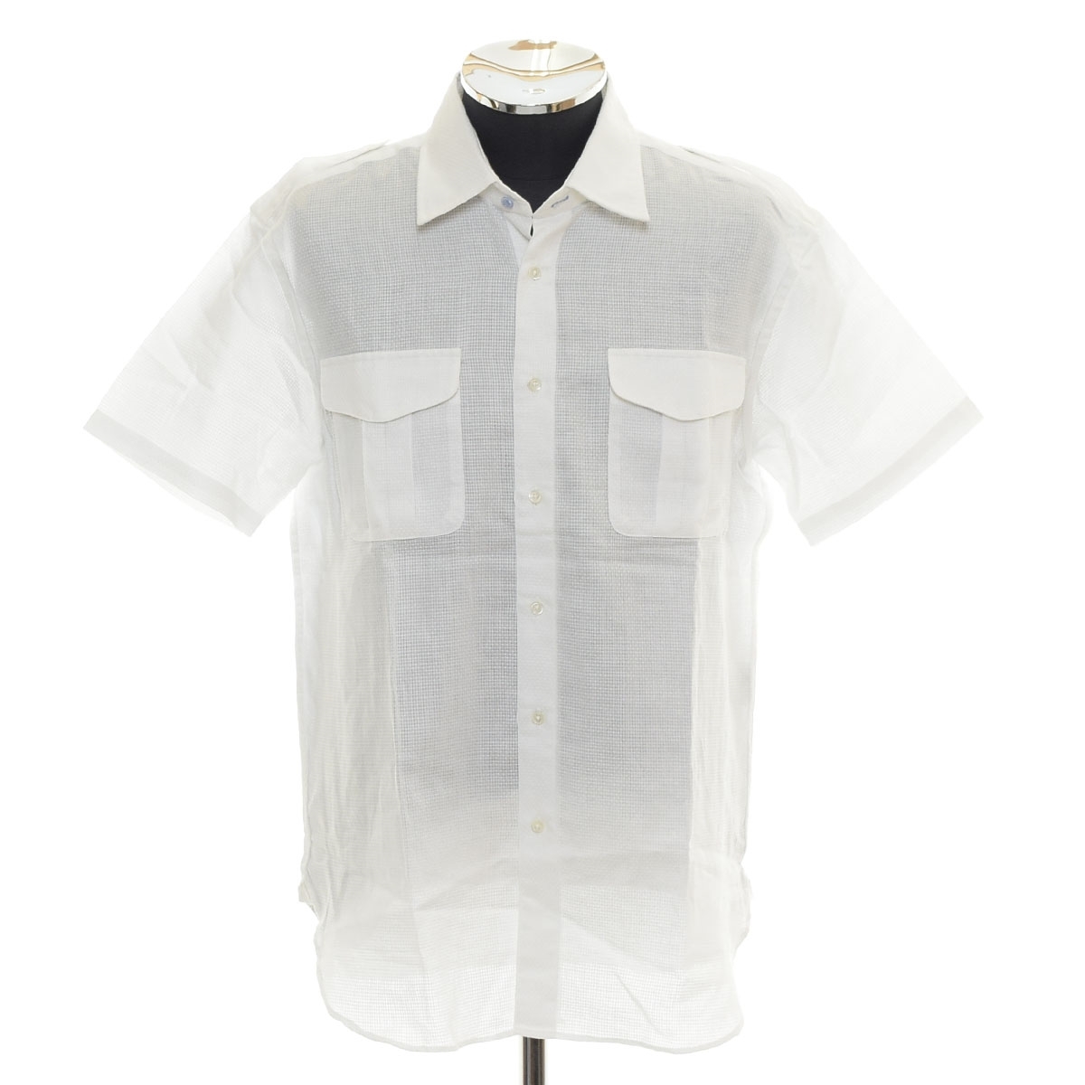 > 〇562099 LANVIN en Bleu ランバン オンブルー ○半袖 シャツ サイズ48 コットン リネン メンズ ホワイト