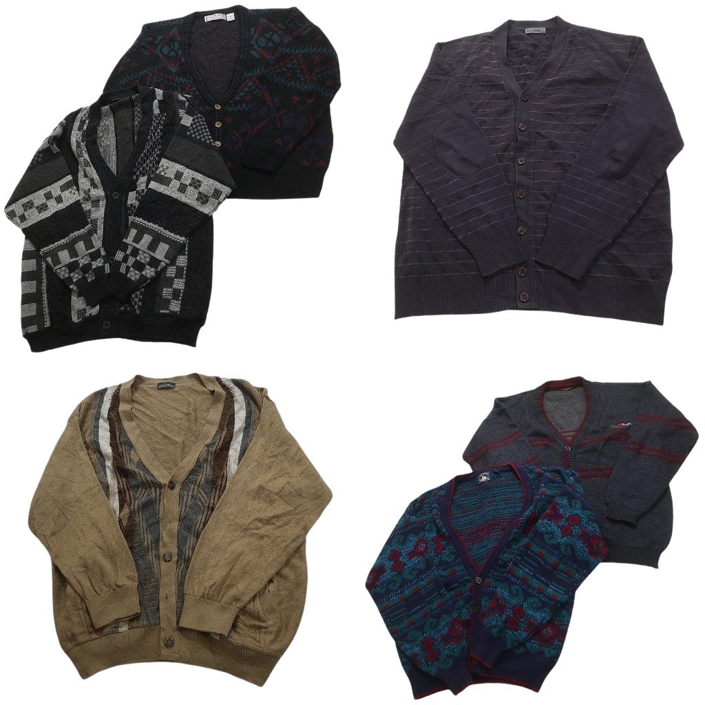 > 古着卸 まとめ売り 柄 カーディガン セーター 6枚セット (メンズ XL ) モノトーン ボーダー 幾何学模様 ライン 中古 古着 NC3612