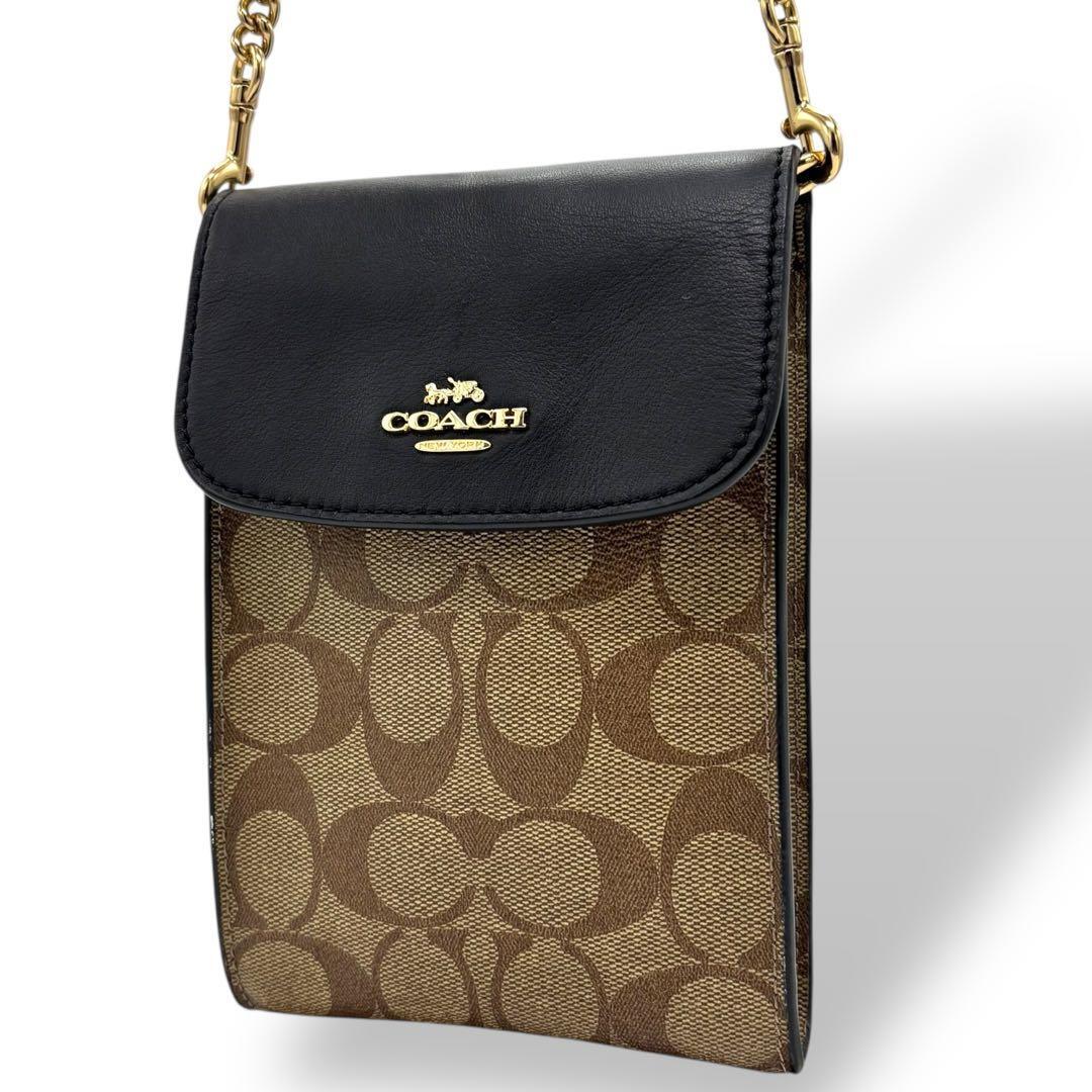 > COACH Shoulder Bag Leather pvc y2k コーチ ショルダーバッグ レザー チェーン 馬車ロゴ スマホポーチ 21