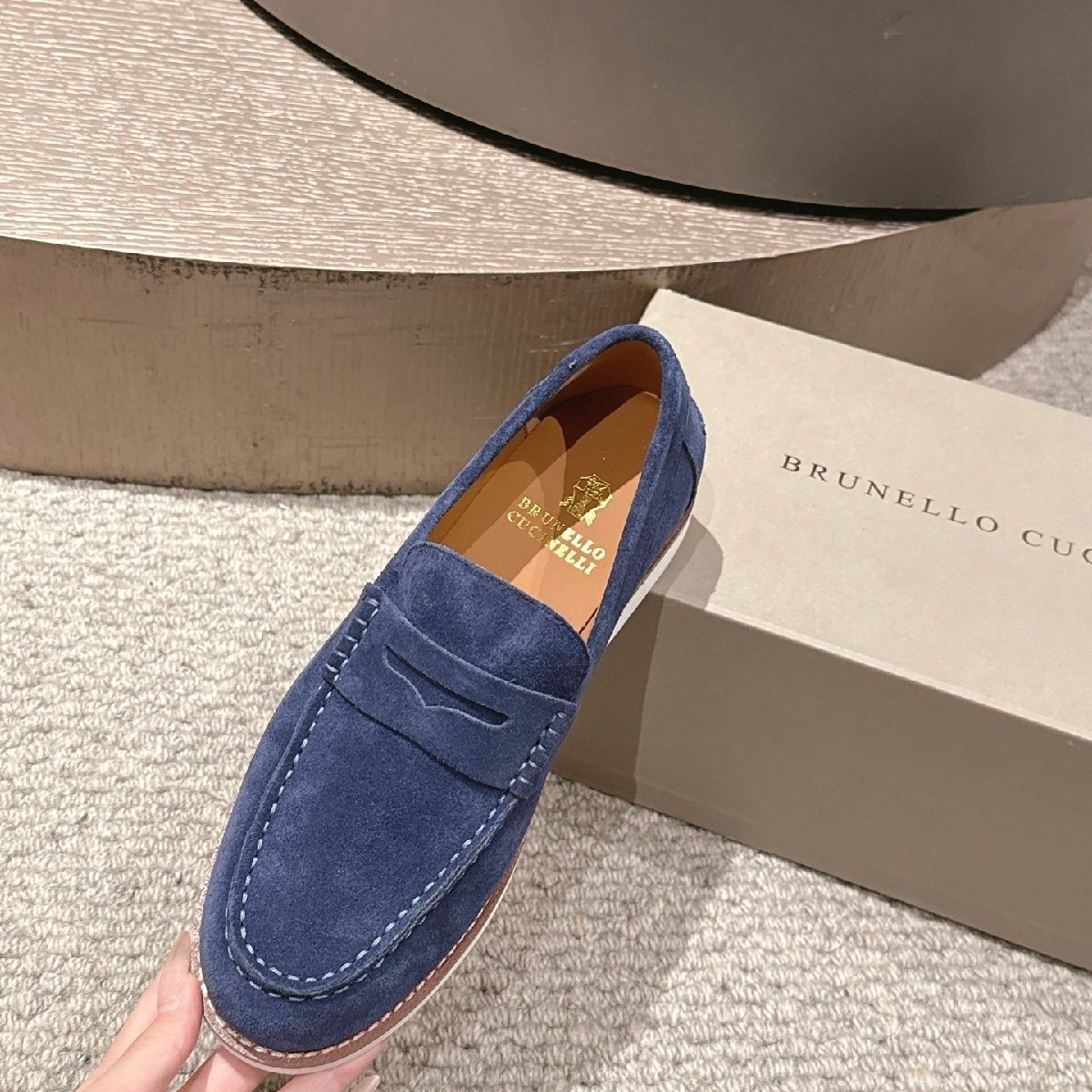 - ブルー26.0cm ★送料無料★ブルネロクチネリ★メンズスエード ペニーローファー, ホワイトソール, カジュアルシューズ