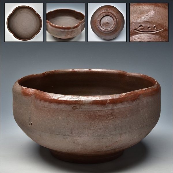 - SP5777 吉本正 備前 菓子器 器 中鉢 鉢 茶道具 師 人間国宝 藤原啓