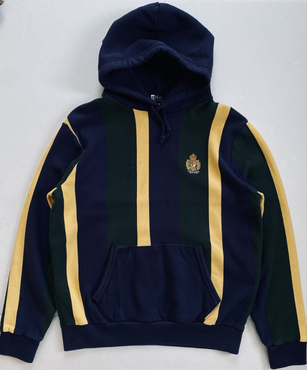 > POLO RALPH LAUREN ポロ ラルフローレン クレスト ストライプ パーカ スウェット フーディ メンズLG 裏起毛