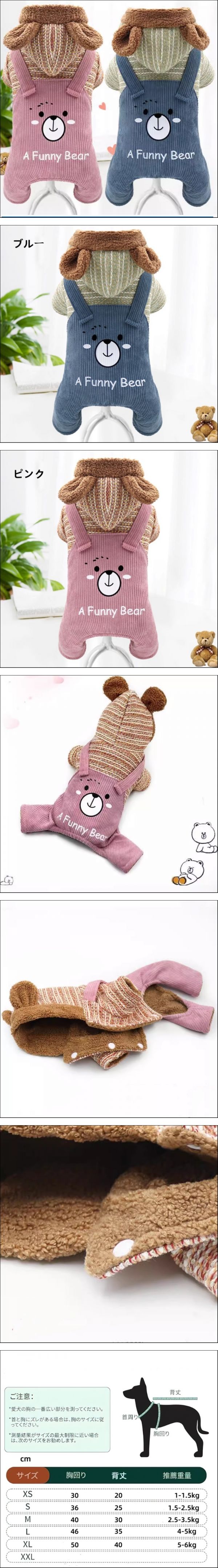- 犬用ペット服 ニット 四足タイプ フード付き つなぎサロペット 裏地起毛 厚手 秋冬用 ドッグウェア 小中型犬 防寒 ワンちゃん服 柔らかい