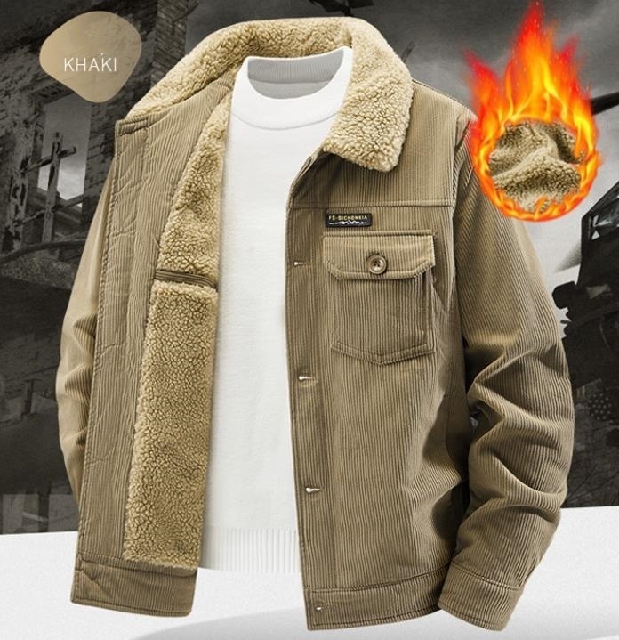 - 裏フリース ジャンパー ブルゾン コーデュロイ 新品・メンズ 裏ボア ワークジャケット アウター コート【2266A】カーキ 3XL