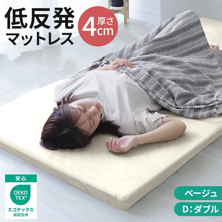 - 【ベージュ/ダブル】マットレス 低反発 マットレストッパー 低反発ウレタン 腰痛 ノンスプリングマットレス 洗えるカバー ベッド 寝具