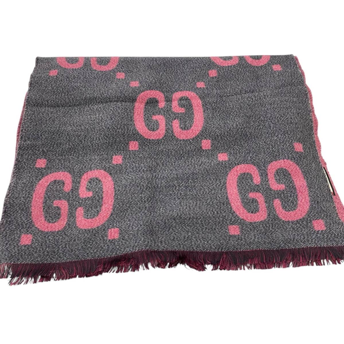 > 186005 GUCCI グッチ GGジャガード ウール マフラー グレー×ピンク 558007 3G636