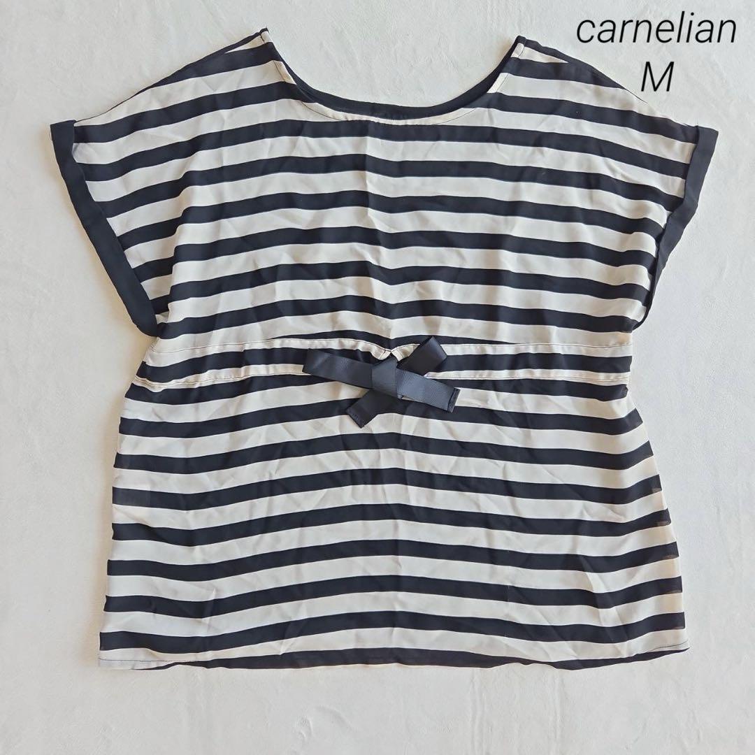 - カーネリアン carnelianブラウス M ボーダー リボン 黒 ベージュ