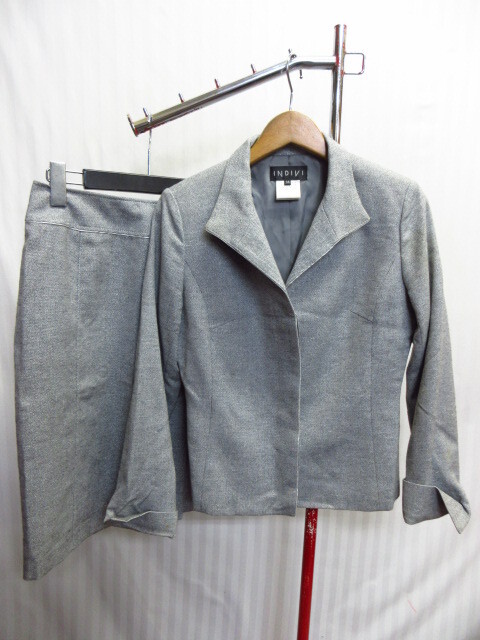 - INDIVI インディヴィ レディーススーツ上下セットアップ SIZE38 グレー フォーマル セレモニー ツイード調ジャケット スカート 10161