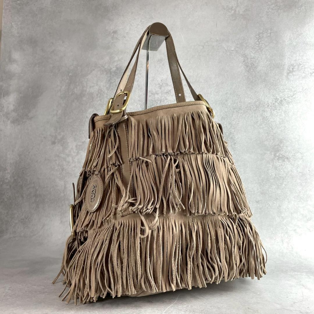 > 【入手困難/美品】TOD'S トッズ フリンジ トートバッグ レザー×スウェード ベージュ ハンドバッグ レディース 鞄 ビジネス カジュアル