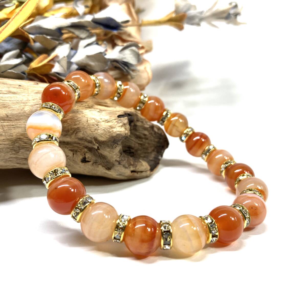 > カーネリアン・サードニクス(サードオニキス) 天眼石パワーストーン ブレスレット 10mm 天然石ブレス (ゴールド) メンズ・レディース♪