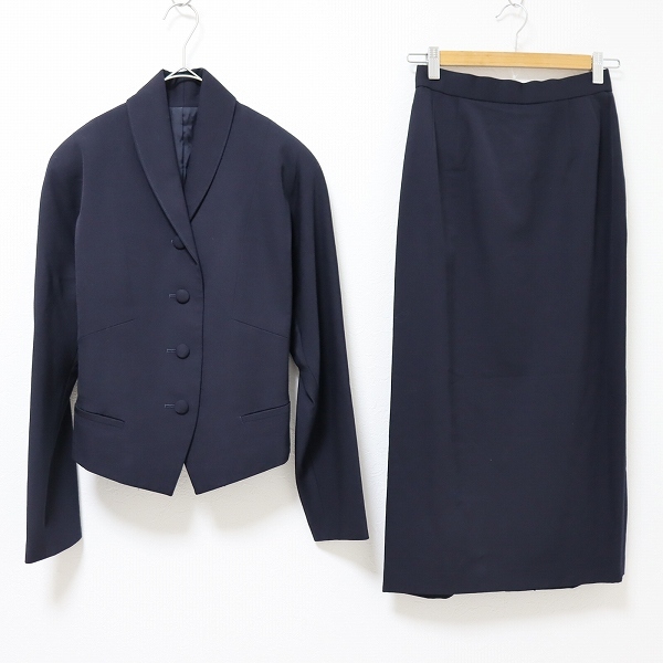 ◎商品名(タイトル):マリココウガ MARIKOKOHGA セットアップ スカートスーツ ジャケット スカート [a974456n]◎ブランド名:マリココウガ MARIKOKOHGA◎アイテム名:セットアップ スカートスーツ◎サイズ:-◎性別:レディース◎カラー:紺系 ネイビー系◎素材:画像をご参照ください◎実寸サイズ:(トップス)ゆき丈約 77cm・着丈約 44.5cm・胸囲約 43cm×2 (スカート)ウェスト約 31cm×2・ヒップ約 48cm×2・スカート丈約 78cm(スリット丈約 18cm)◎商品コメント:★当店の商品はすべてリユースアイテムとなります。特質上、些細なダメージは記載しておりませんので着用に問題のない使用感、着古した雰囲気などはご了承くださいませ。◎コンディションレベル:目立った傷や汚れなし◎コンディション備考:バックルの裏にやや錆びがございます(画像7参照)キーワード/アクイール/古着/used/ビンテージ/ヴィンテージ/レトロ/昭和/(株)ニコル/テーラード/テーラードジャケット/ロング/ロングスカート/スリット