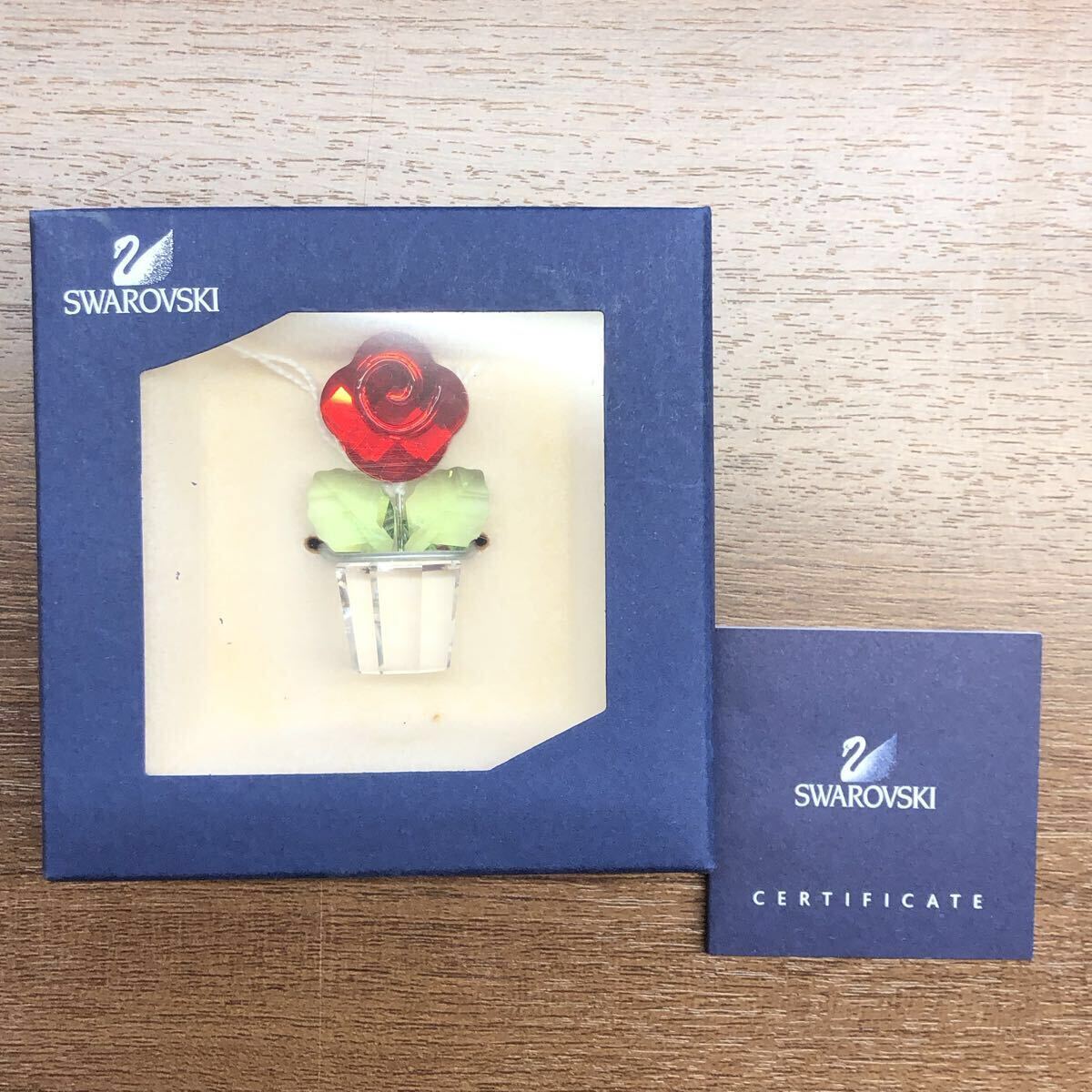 - 【044】 保管品 SWAROVSKI スワロフスキー 置物 オブジェ インテリア クリスタルフラワー ローズブーケ 箱付き 高さ約4.8cm 赤い花 鉢植え