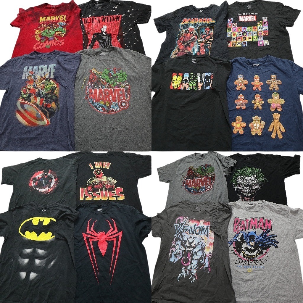 > 古着卸 まとめ売り マーベル DCコミック 半袖Tシャツ 16枚セット (メンズ L ) バットマン ヴェノム スパイダーマン 中古 古着 NC3790