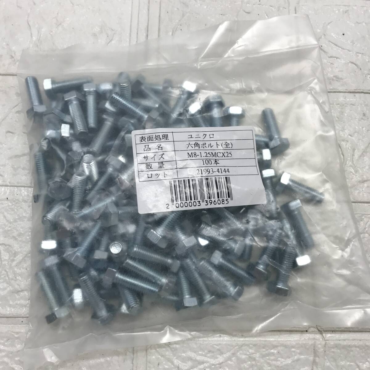 ★【在庫処分価格】六角ボルト 100本 M8-1.25MCX25 ユニクロ☆T10-763J
