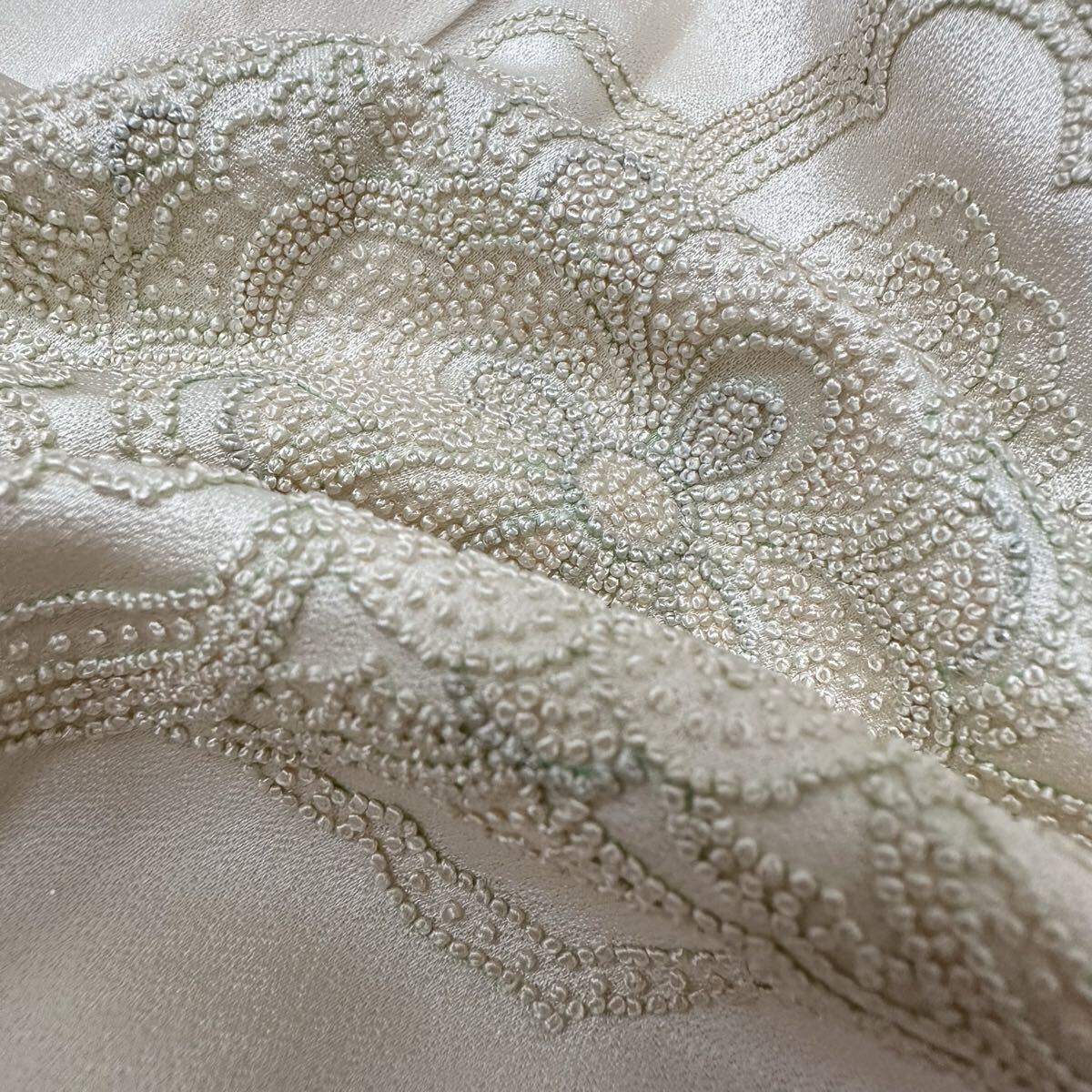 - 相良刺繍 付下げ 正倉院模様 上品白地 着物 正絹 Q-189