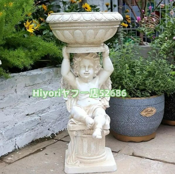 - ガーデンオーナメント 天使 エンジェル エレガント 西洋 おしゃれ かわいい オフホワイト ガーデン オブジェ 自立式 屋外 装飾用