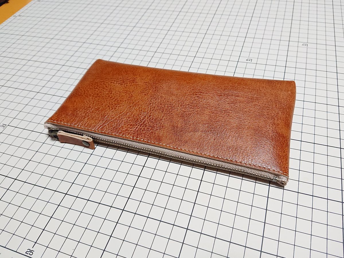 - レザー◆本革 ペンケース 牛革 210x103mm 58g O 茶系 アンティック