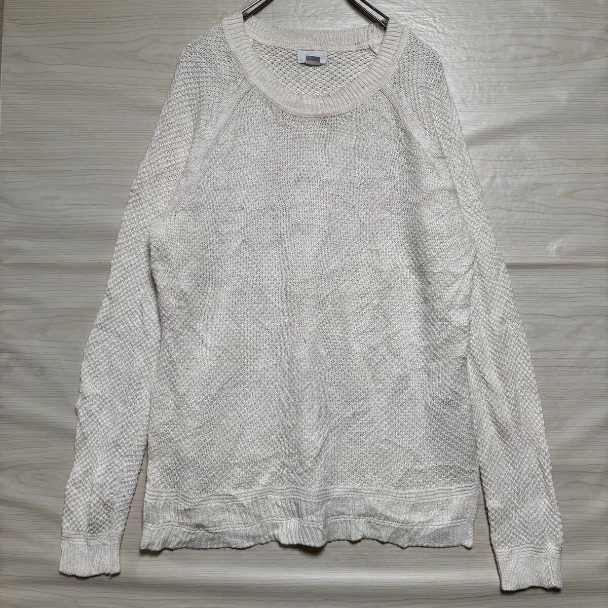 - OLDNAVY オールドネイビー ニット トレーナー セーター クルーネック ラグランスリーブ サイズL ホワイト コットン メンズ トップス(36)