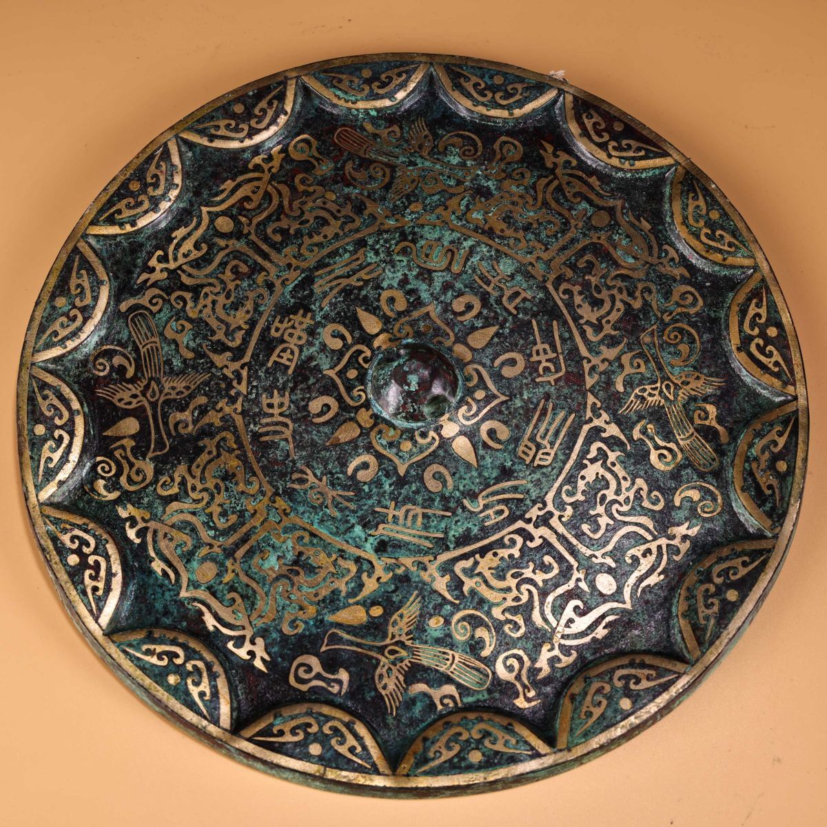 - 【永】漢代時期 青銅器 錯金 銅鏡 極細工 古銅彫 置物擺件 古美術品 時代物 古董品 収集 古美味 骨董品 旧家蔵出 中国唐物 A2
