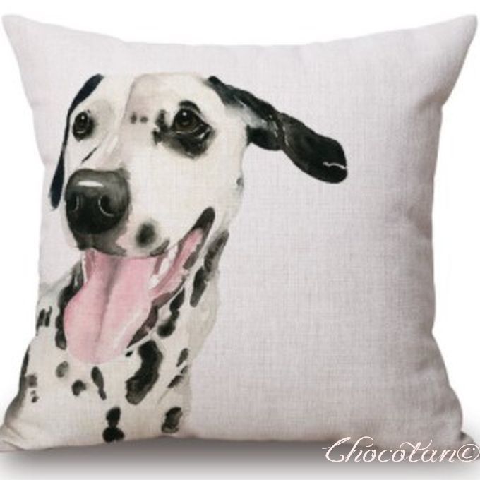 - 【送料無料】ダルメシアン S イラスト コットンリネン 45x45cm クッションカバー【 新品】