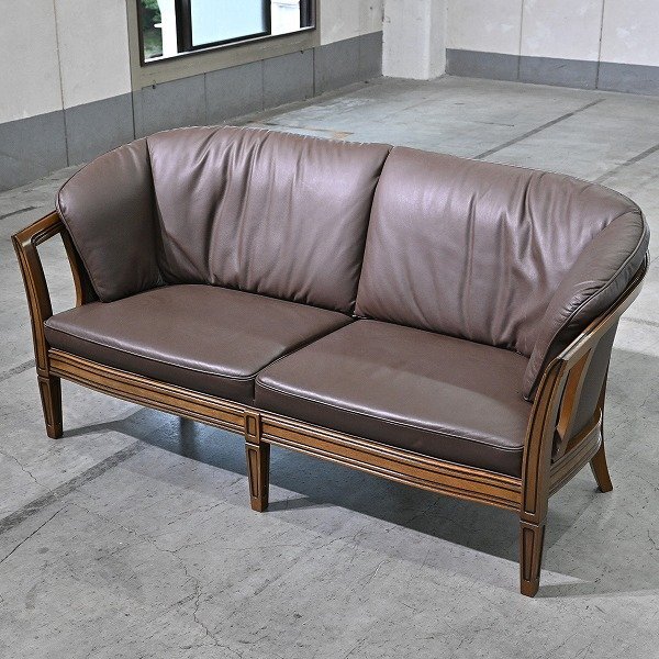 - マルニ 地中海ロイヤル 65万「シャルル」2人掛けソファ 本革 ビーチ材 リビング ダイニング アーム 2P ラブ クラシカル maruni_カリモク