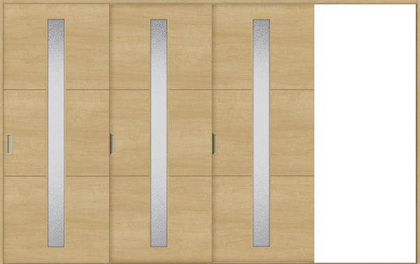 | 商品紹介 | ○ トステム (LIXIL) の室内建具 片引戸 3枚建 ラシッサS クリエ ○ デザインLGD ○ ノンケーシング ○ 枠の見込み:(210mmのみ) * 色をお選び頂けます * 引込勝手をお選び頂けます * 引手色をお選び頂けます * 沓摺りを4種類よりお選び頂けます。 * ガラスの種類をお選び頂けます。