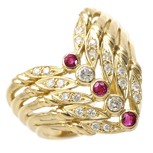 - 送料無料 本物 ルビーダイヤモンドリング 指輪 K18Ygイエローゴールド ルビー0.19ct ダイヤ0.25ct 10.5号 仕上げ済み 幅広デザイン