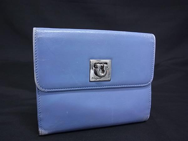- Salvatore Ferragamo フェラガモ IR-223101 ガンチーニ レザー 三つ折り 財布 札入れ 小銭入れ ライトブルー系 DK5724