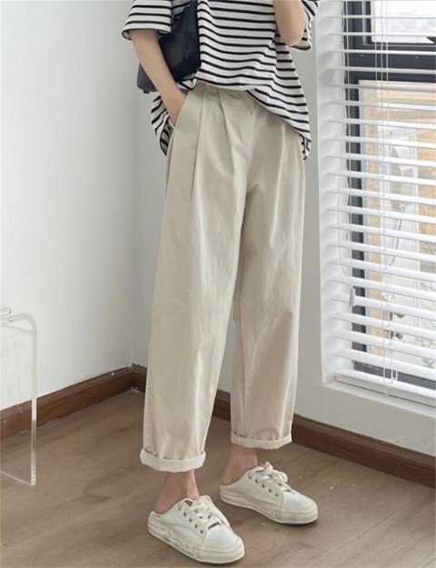 - ロングパンツ カジュアルパンツ ワイドパンツ レディースパンツ シンプル カジュアル 大きいサイズあり S カーキ