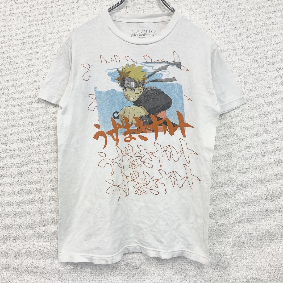 - 古着 used NARUTO 半袖プリントTシャツ うずまきナルト キャラクターデザイン クルーネック 白 レトロ Sサイズ