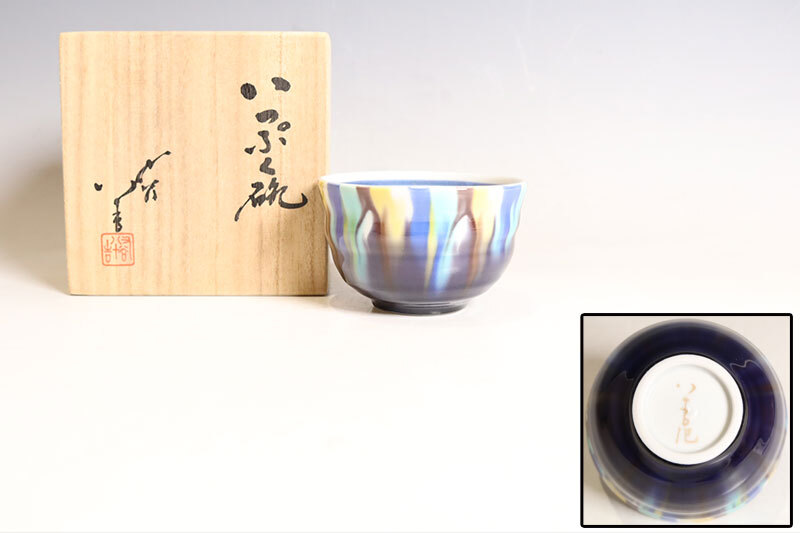 - 人間国宝 三代 徳田八十吉 金銘 いっぷく碗 共箱 栞附 (D575)