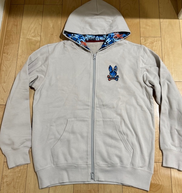 > ★未使用・わけあり★Psycho Bunny サイコバニー 裏起毛 保温防寒 スカルバニーロゴ刺繍 ポケット付き フルジップパーカー Lサイズ