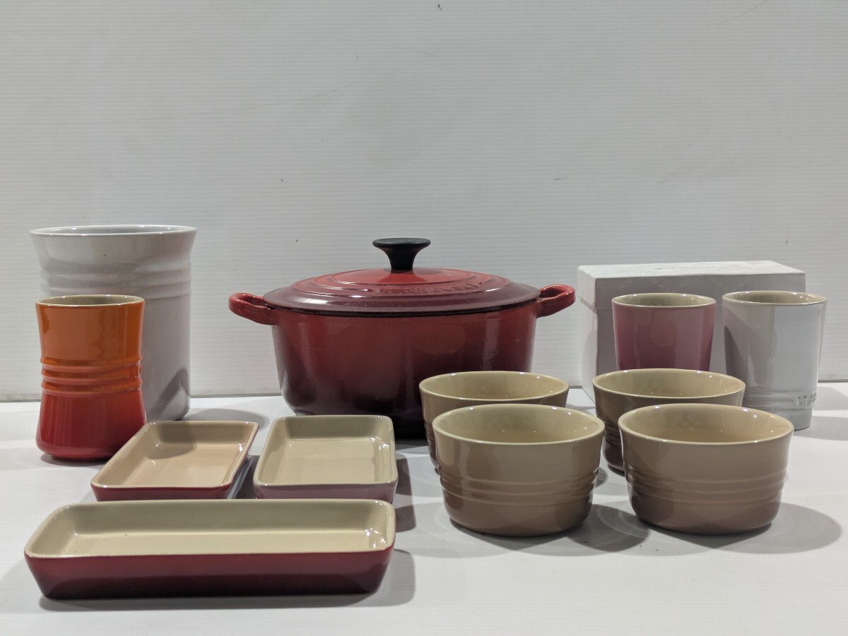 - LE CREUSET 食器 ココット ルクルーゼ 取り皿 ミニサイズ鍋 洋食器コップ中古品キズあり コーティング剥がれあり箱入りもあります