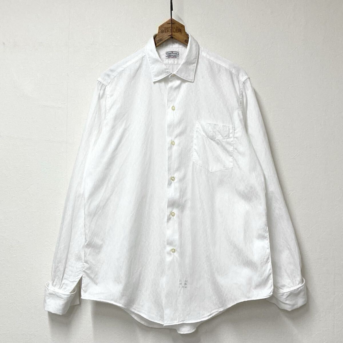 > 60s【HALLMARK】ジャカード生地 6ボタン ホワイト ドレスシャツ size 16 35 USA製 幾何学模様 ダブルカフス ヴィンテージ/白 長袖シャツ
