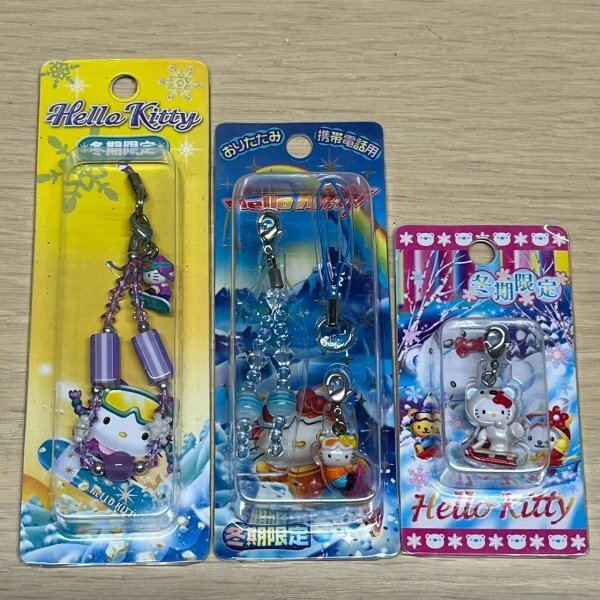 - 【新品】2002、2004、2005年製/レア/ハローキティ/冬期限定/ファスナーマスコット/ストラップ/二つ折り携帯用ストラップ/kitty