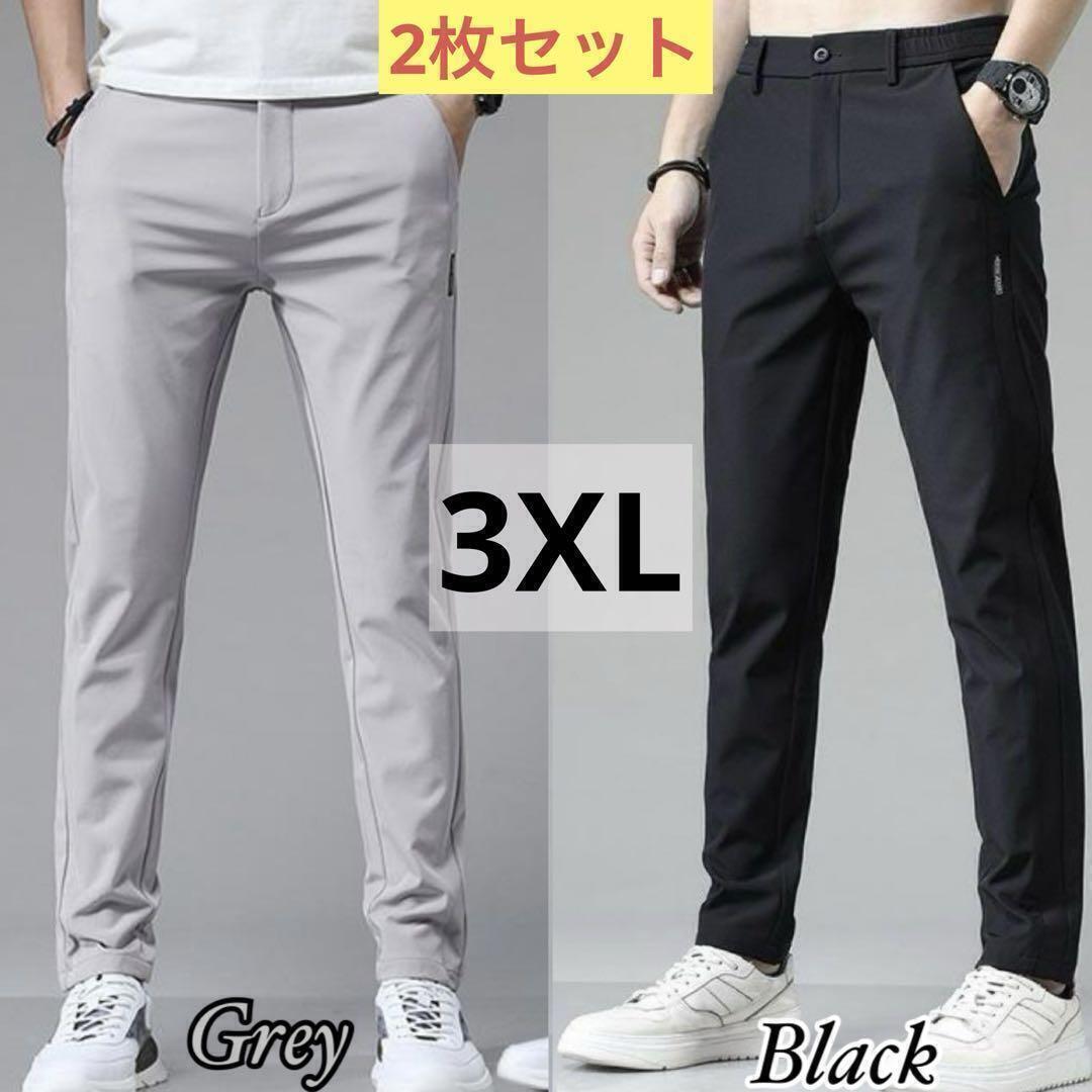 - 通気性 カジュアル パンツ 3XL ブラック & グレー 2枚セット ロング ズボン ゴルフ 大きいサイズ