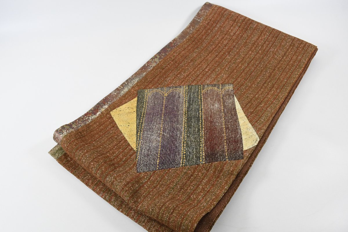 - 袋帯 お太鼓柄 縞模様 幾何学模様 帯丈447cm ★着物屋 ne-16779 桜庭呉服店