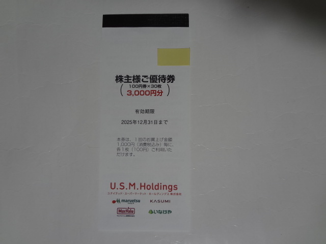 > U.S.M.Holdings ユナイテッドスーパーマーケット株主優待券 3,000円分♪2025年12月31日まで マルエツ カスミ マックスバリュ関東 いなげや
