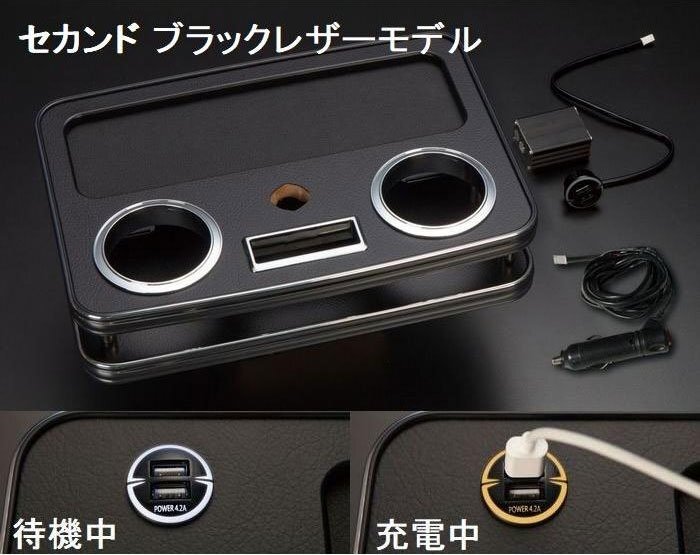 - リム セカンドセンタードリンクホルダーV3 USBポート付 [フロント2人乗] ブラックレザー 1set ハイエース 200系 2004年8月~ 標準/ワイド