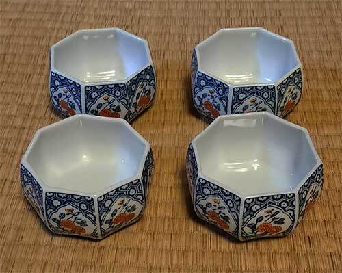 - 小鉢 八角形 幸 菊 深小鉢 4個 4客 直径約8.5cm 陶器 和食器 昭和 レトロ レア 未使用